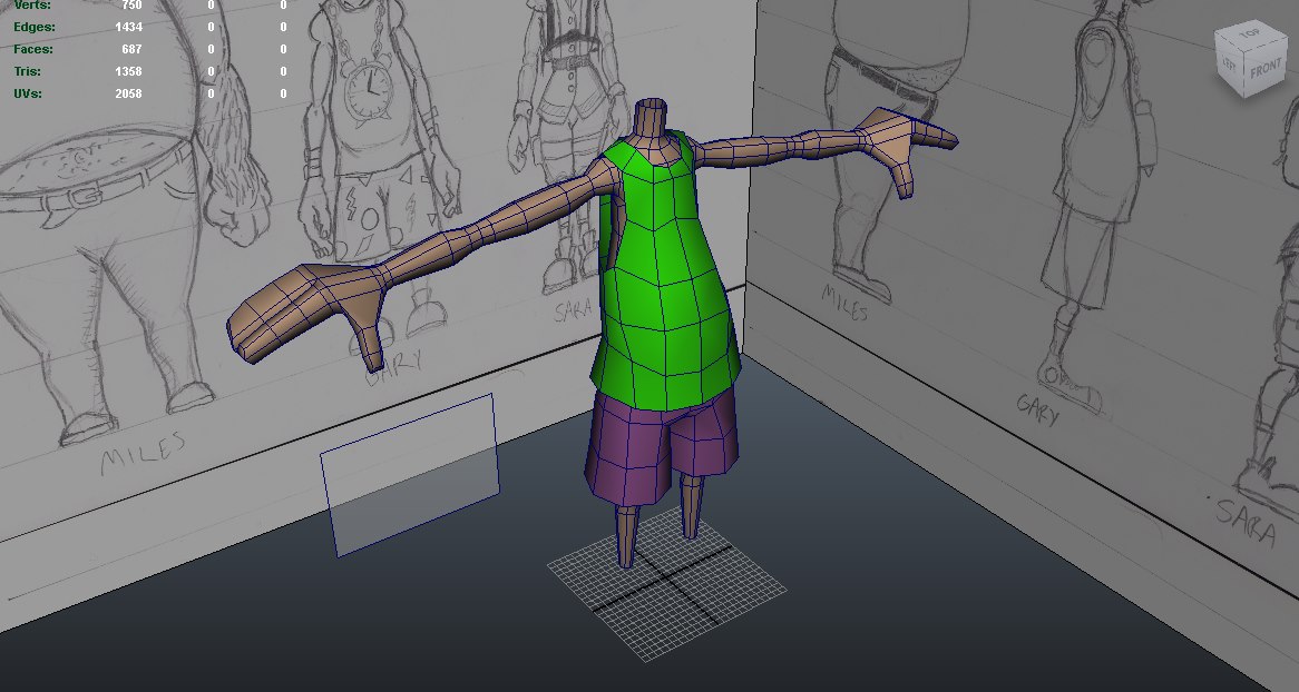 A partial rendering of one of the playable in-game characters. Displayed using Maya.